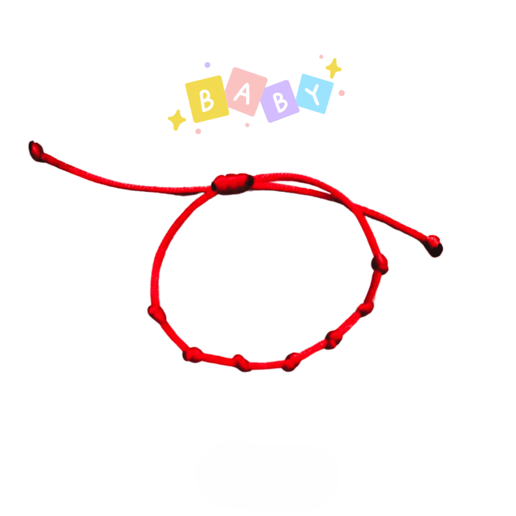 Esta pulseira 7 nós vermelha é um amuleto poderoso e simbólico de proteção para bebês e crianças. Tradicionalmente utilizada como um escudo contra energias negativas e mau-olhado.